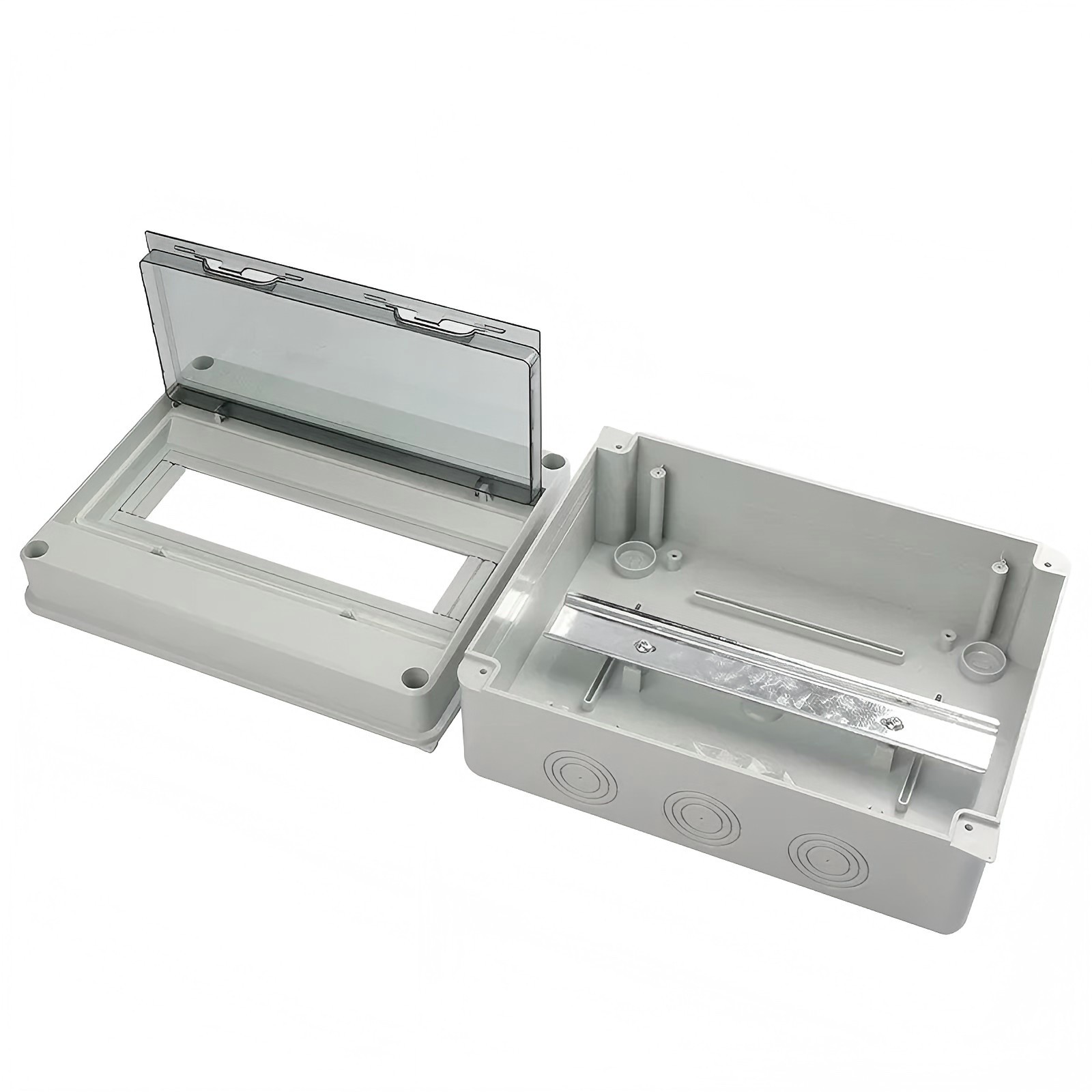 2Kotak distribusi daya tahan air memiliki rel 35mm standar di dalam.
